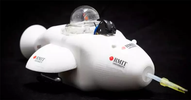 Researchers at Australia’s RMIT University have developed a compact robot for cleaning up oil spills. The prototype is shaped like a dolphin and can move across the water’s surface, independently collecting oil.