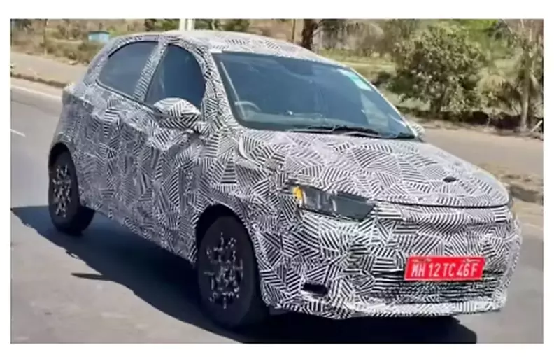 The test mule seen in the spy images hints at noticeable changes to the front design of the facelifted Tiago EV.